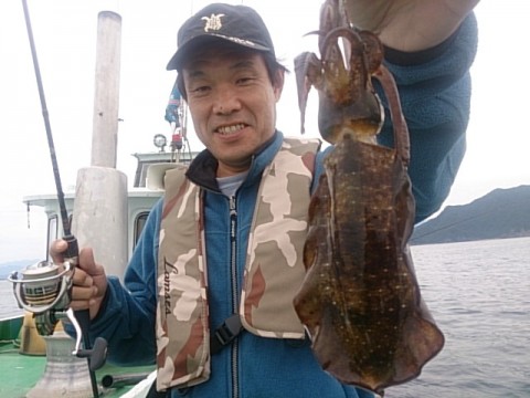 22日半夜便で伊賀市の稲森さんら六人の乗り合いでアカイカ、スルメイカ、合わせて約90杯釣り上げられました。潮が変わったのかスルメイカが多く食いも渋く厳しい釣りになりながらも皆様頑張ってくださいました。