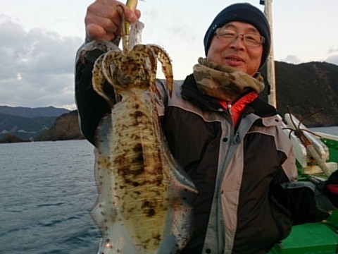 碧南市の磯貝さんら五人の乗り合いでアオリイカ10杯、アカイカ7杯釣り上げられました。今日も食いが渋く厳しい釣りでしたが皆様頑張って釣り上げていただきました。型もいいアオリイカも入って今後期待しております。