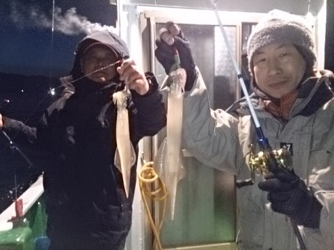 守山市の平田さんらの乗り合いでアオリイカ23cm~14cmを7杯、甲イカ1杯、アカイカ1杯、釣り上げられました。うねりがあり無風状態で厳しい釣りになりましたが全員釣り上げてくださいました良かったです。