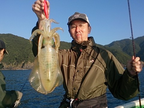 残念ながら釣果はありませんでした。23日半夜便は四人のお客様で出船 。ヤリイカ狙いで頑張ってくださいましたがあたりがなくスルメイカ狙いに変更してから合わせて40杯程釣り上げられました。24日午前便は大和郡山市の谷本さんら二人でアオリイカ27cm ~18cmを3杯釣り上げられました。