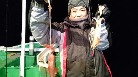 早川さんは最初に良型ヤリイカを釣り上げられました。