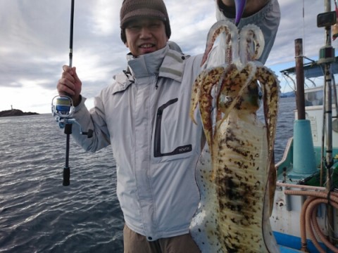 奈良市の森澤さんらの乗り合いで出船。今日はスタートこそ渋かったですが釣れ出してからは最後まで好調で前日同様三桁超えで今日はほとんどがヤリイカ、アカイカでスルメイカは数杯でした。今日は始めて方が多くまずまず釣って頂き良かったです。最後まで頑張ってくださいましてありがとうございました。