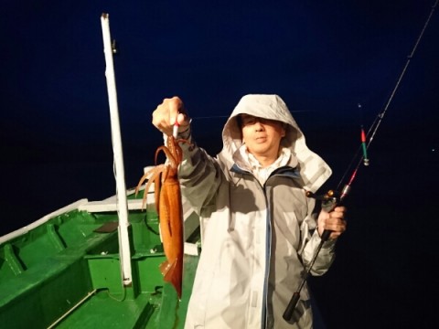 松阪市の池田さんら三人でスイミングテンヤで出船。オオモンハタ45cm、40cmを各1尾、カサゴ、アカハタ等釣り上げられました。小雨の中頑張ってくださいましてありがとうございました。また半夜便は大雨の予報の為出船は取り止めさせて頂きました。明日は出船しますのでよろしくお願いします。