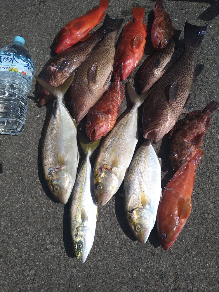 タテ釣りとノマセ釣りで出船。シオ3尾、ツバス、オオモンハタ、カサゴ等釣り上げて下さいました。オオモンハタもカサゴも型が良く他バラシもあり良くあたって下さいました。 釣果情報 よかったらシェアしてね! URLをコピーしました! 26日も休み 27日半夜便の釣果です 関連記事 13日は天候が悪く休み 2018年5月13日 4日半夜便の釣果です 2019年6月5日 3日半夜便の釣果です 2016年2月4日 15日半夜便の釣果です 2023年11月16日 10日午前便の釣果です 2014年12月10日 今日も休み 2024年2月23日 15日は午前便、午後便共に休み 2017年3月15日 20日午前便の釣果です 2015年7月20日