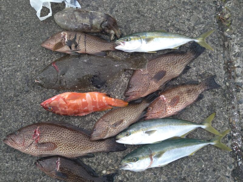 ノマセ釣りの仕立て船で出船。前半は潮が動かず食いが渋かったですが中盤からはいい型のオオモンハタ、ヒラメ40cm、ツバス数尾、アカハタ等釣り上げて下さいました。 釣果情報 よかったらシェアしてね! URLをコピーしました! 18日午前便の釣果です 関連記事 18日半夜便の釣果です 2023年6月19日 15日午前便の釣果です 2014年12月15日 20日半夜便の釣果です 2025年8月21日 22日半夜便と23日午前便の釣果です 2015年8月23日 4日午前便の釣果です 2021年11月4日 16日午前便の釣果です 2016年11月16日 23日も休み 2024年10月23日 13日半夜便の釣果です 2020年3月14日