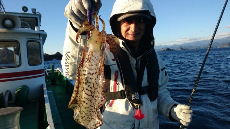 3日午前便の釣果です若船長船で名古屋市の岩崎さんら二人の仕立て船でティップランで出船。アオリイカ4杯釣り上げられました。船長船は1杯に終わりました。食いが渋い中最後まで頑張ってくださいましてありがとうございました。 岩崎さん良型ゲット。 関戸さん頑張って釣り上...