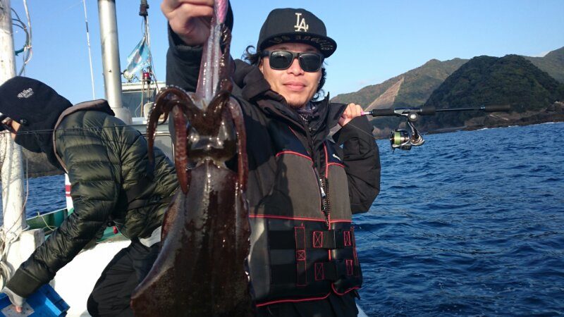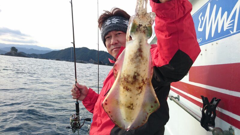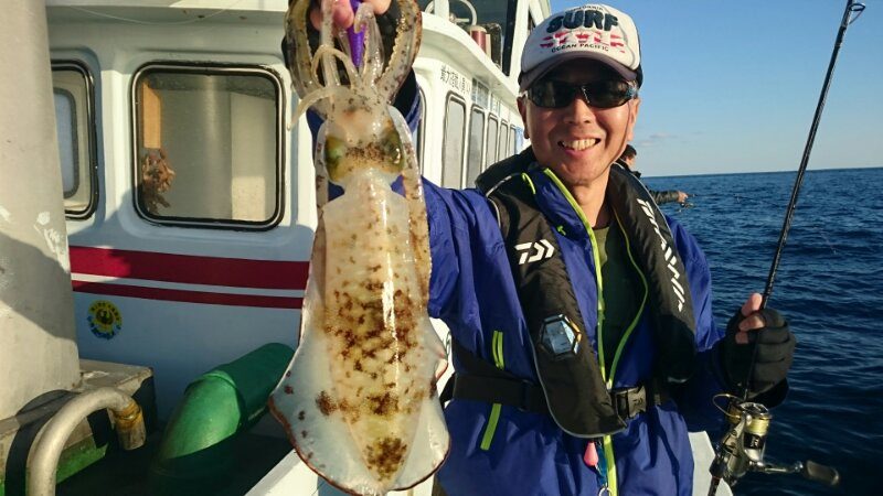2日午前便の釣果です鈴鹿市の古市さんら三人でティップランで出船。アオリイカ5杯釣り上げられました。食いが渋い中頑張ってくださいましてありがとうございました。 古市さんいい型ゲットしました。