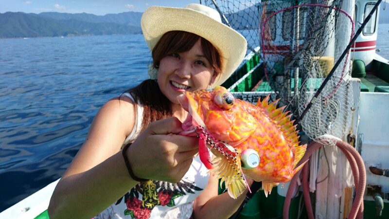 津市の山城さんら二人で鯛ラバ、ジギングで出船。台風後の水潮で食いが渋くオニカサゴ、カサゴだけに終わりました。暑い中頑張ってくださりありがとうございました。 藤本さんさすがですカサゴ連発でした。 山城さんも大型カサゴゲットしました。