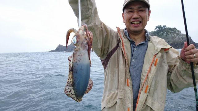 鈴鹿市の東山さんら四人の乗り合いで出船。続いている波のせいで潮が濁り食いが渋く苦戦しました。型は良かったですがアオリイカ11杯に終わりました。高い波の中最後までありがとうございました。 -