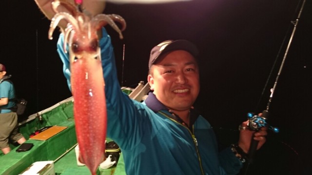 四日市市の大山さんら六人の乗り合いで出船。前半から好調で良かったですか10時頃からパタリとあたりがなくなり思ったより釣果が伸びず残念でした。それでもアオリイカ38杯釣り上げていただき良かったです。これからももっと良くなってくると思います。 -