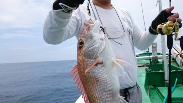 鯛ラバ&ジギングで出船。真鯛58cmレンコ鯛、カサゴ、ホウボウ、サバ等釣り上げられました。潮が動かず厳しい状態でしたが頑張ってくださいましたありがとうございました。 太田さん初めて釣った真鯛です。 -