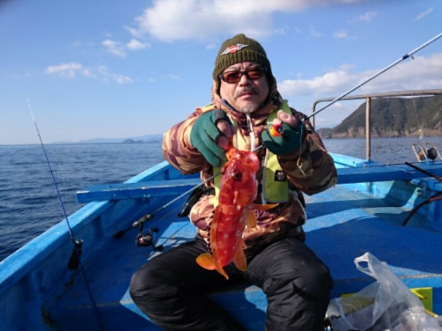 午前便で鯛ラバで出船しましたがアカハタ、カサゴだけに終わりました。途中風も強くなり厳しい釣りになりましたが最後まで頑張ってくださいましてありがとうございました。 大野さんは大型アカハタを釣り上げられました。 -