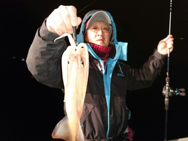 津島市の須崎さんらの乗り合いで出船。月夜、急な水温の低下の為か食いが渋く多い方で15杯程でしたがいい型のヤリイカも数杯入って来て今後楽しみになって来ました。お客様には最後まで頑張ってくださいましてありがとうございました。 須崎さん食いが渋い...