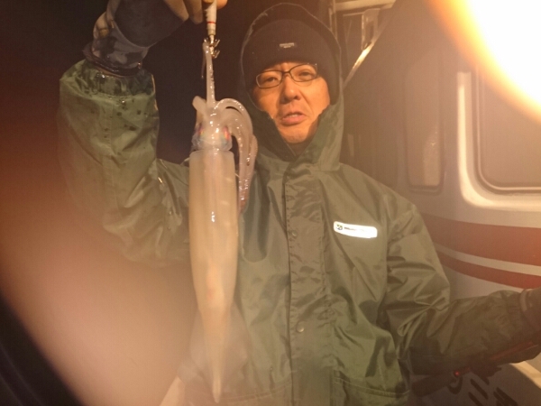 茨木市の佐藤さんらの乗り合いで出船。潮が濁っており食いが渋くうねりも出てきて厳しい状態でしたが皆様頑張ってくださいました。スルメイカ約50杯、アカイカ20杯位釣り上げられました。最後までありがとうございました。 佐藤さん特大スルメイカゲットし... -