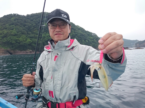 今日は強い雨の中頑張っていただきましたが食いが渋く厳しい釣りになりました。雨に濡れながら最後までありがとうございました。 奥山さん最初に釣り上げられました。 仮谷さんスルメイカ、アカイカ連続ゲットしました。 -