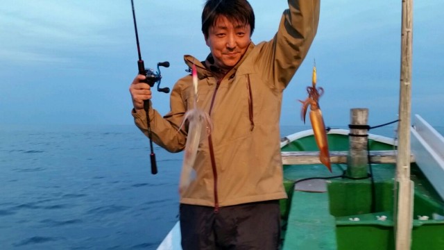 スマホが故障して釣果を送る事ができず写真もないですが釣果だけ報告させていただきます。14日午前便は京都市の長岡さんら二人でアオリイカ34cm、29cmを各1杯釣り上げられました。半夜便は大東市の増田さんら三人で出船。一時は入れ食い状態になりまずまず... -