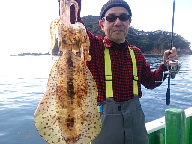大阪市の吉野さんらの乗り合いでアオリイカ30cm.25cmを各1杯釣り上げられました。無風状態で流れもなく厳しい状態の中頑張ってくださいました。 もう一隻は名古屋市の深光さんらアオリイカ28cm~23cmを4杯釣り上げられました。 吉野さんお見事初のキロアッ... -