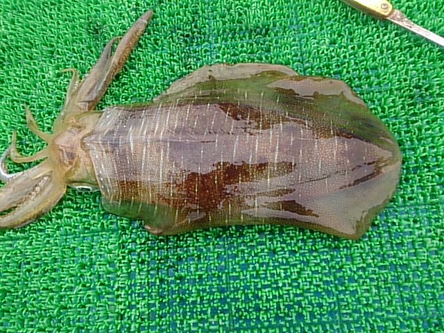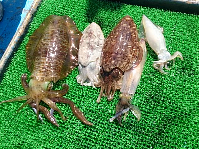 美濃加茂市の中村さんら三人で出船しましたが南風が強くうねりも高く湾内の限られた場所で頑張ってくださいました。アオリイカ27cm,アカイカ2杯甲イカ2杯を釣り上げられました。船酔いしながら最後までありがとうございました。 今日の釣果です。 -