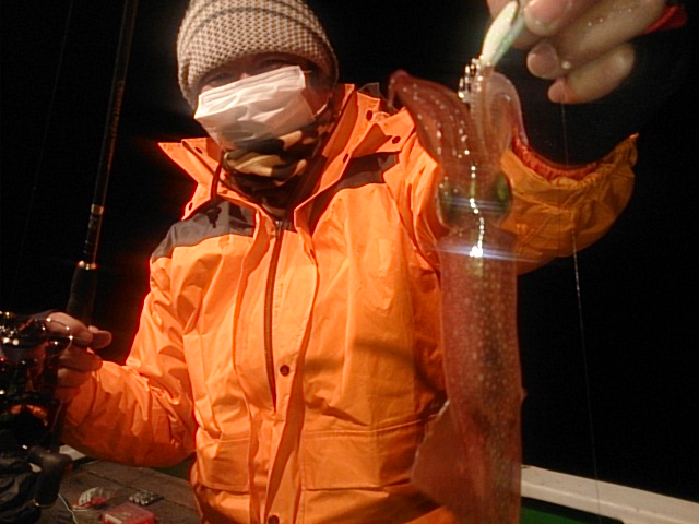13日半夜便で長久手市の佐々木さんら七人の乗り合いで出船。今日は早い時間帯から釣れて爆釣まではいかなかったですがヤリイカ、アカイカ、スルメイカを同じ位の釣果でした。一時はパラソル連発の時もあったのですが続かず残念でした。 佐々木さんスタート... -