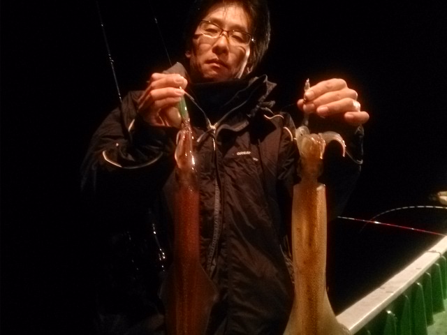 午前便で二人のお客様で出船しましたがアオリイカ28cmを1杯に終わりました。風が強く厳しい状態でしたが頑張ってくださいましたありがとうございました。半夜便は一宮市の山崎さんらの乗り合いで出船。8時すぎまでスルメイカが数杯しか釣れず心配しました... -
