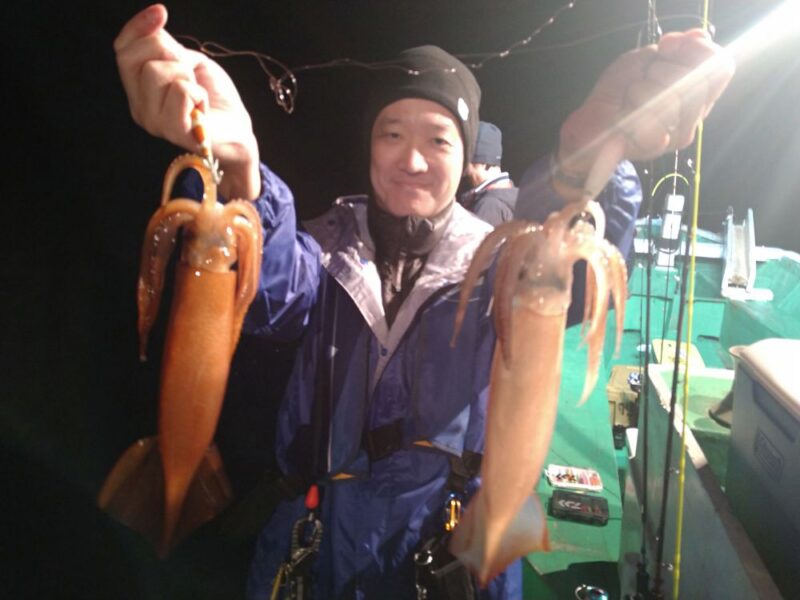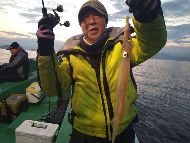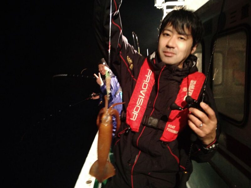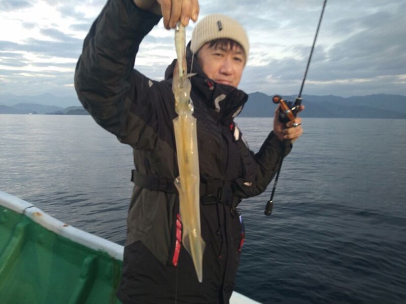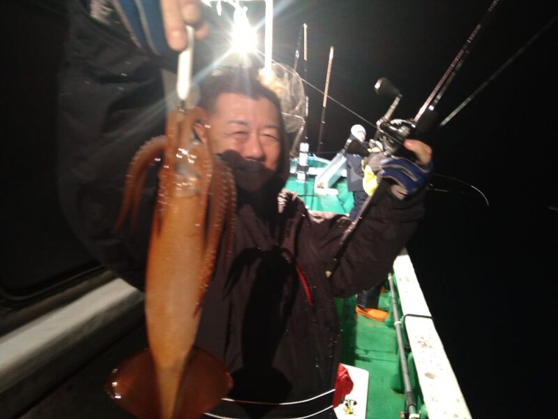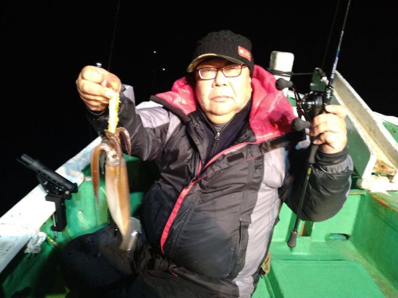 明るい時間にヤリイカが続けて釣れて暗くなるとスルメイカ、アカイカが釣れ出していいスタートでしたがなかなかラッシュには入ってくれず最後までポツポツ状態で厳しい釣りになりました。僚船からイルカが回っていると連絡がありそのせいで渋かったかもしれないです。お客様には最後まで頑張って下さいましてありがとうございました。