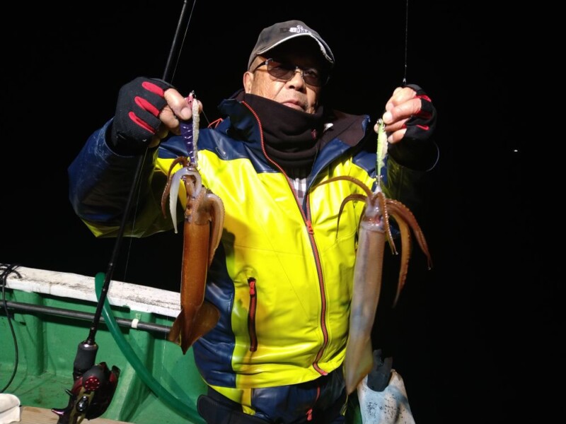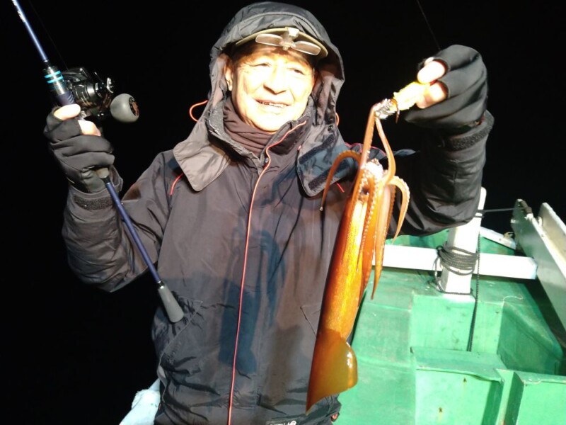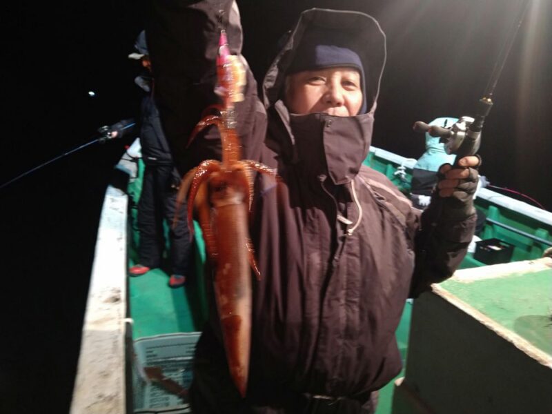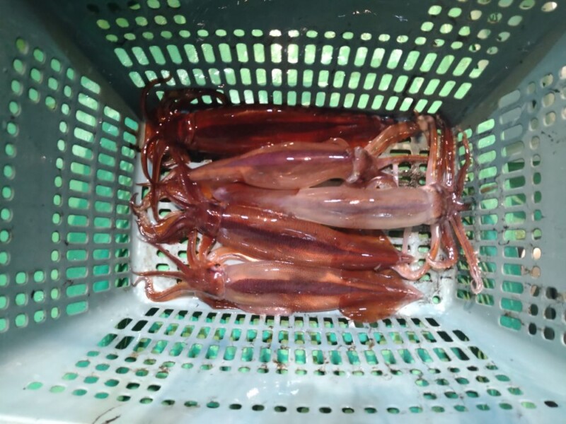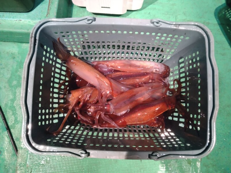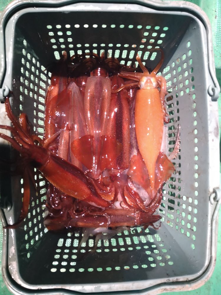 まずまず早い時間帯からヤリイカが釣れたと思ったらスルメイカが水面に見えてタナを上げてもらったら浅いタナでスルメイカのラッシュに入って皆様満遍なく釣れてその後もあまり途切れる事なく釣れて竿頭の方は30杯超えで他の方もほとんど二桁超えで船中130杯超えで久しぶりに良かったです。お客様には風の強い中頑張って釣り上げてくださいましてありがとうございました。