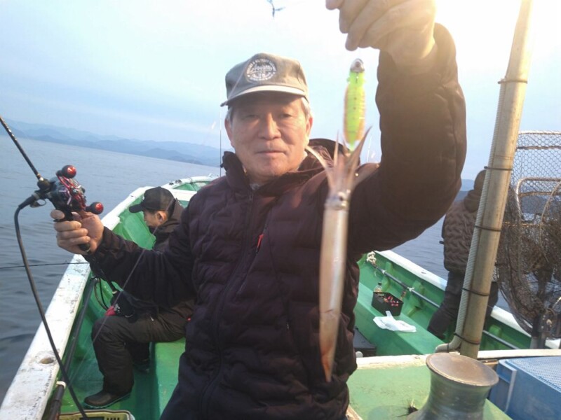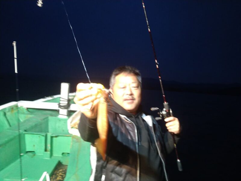 明るい時間から釣れ出して期待しましたが数杯釣れると止まるの繰り返しでなかなかラッシュには入ってくれなかったですが25杯、20杯、18杯とまずまず釣り上げて下さいました。水面にイカが群れで見えており今後も期待します。お客様には最後まで頑張って下さいましてありがとうございました。