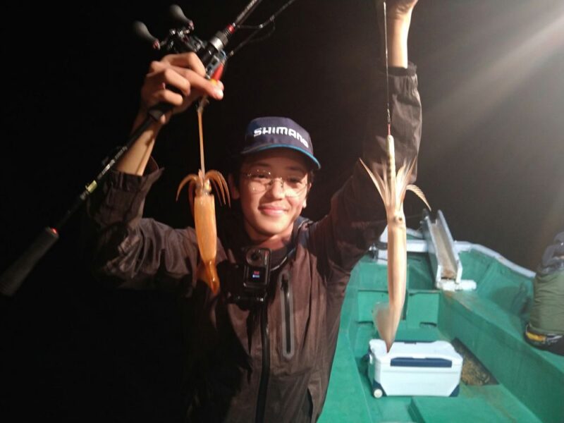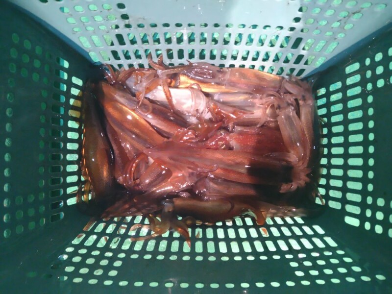 明るい時間から釣れ出しましたが先日のように早い時間帯からラッシュには入らなかったですが休む事なく釣れていると後半には深いタナで入れ食いになり二人で100杯近く釣り上げて下さいました。いい感じで釣れており今後も期待します。また天候が心配ですが土曜日もまだ空きが有りますのでご予約お待ちしております。