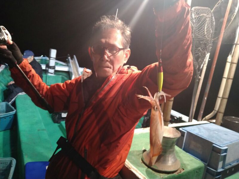釣れ出しが麦イカが浅いタナで続けて釣れて期待しましたがその後は渋く後半に深いタナでスルメイカが釣れても連発とは行かず厳しい釣りになりました。お客様には最後まで頑張って下さいましてありがとうございました。
