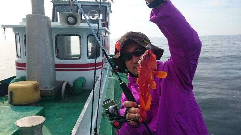 松阪市の池田さんが鯛ラバで出船。真鯛46cmを1尾釣り上げられました。朝一投目で釣れて期待しましたが後はカサゴだけに終わり残念でした。暑い中頑張ってくださいましてありがとうございました。 池田さん一投目で釣り上げられました。 -