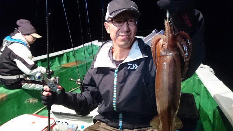 津市の鎌田さんらティップランからのロング便で出船しましたが南風が強く厳しい状態で頑張ってくださりお土産は確保してくださりました。波が高い中頑張ってくださいましてありがとうございました。 鎌田さんいきなりスルメイカを釣り上げられました。 中... -