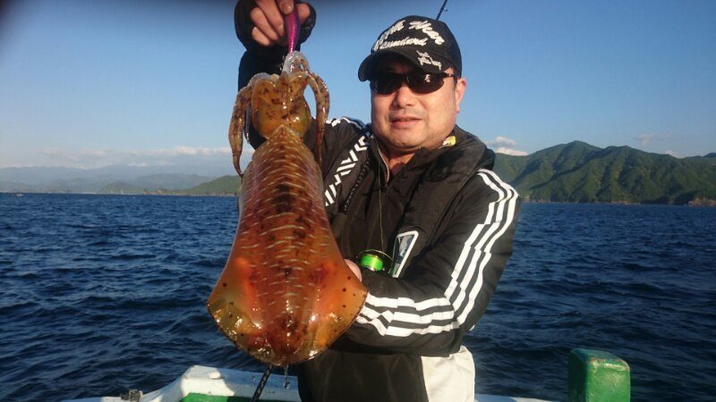 名古屋市の深光さんが二人でティップランで出船。アオリイカ2杯釣り上げられました。無風で流れもない状態でしたが頑張ってくださいましてありがとうございました。もう一隻は残念ながら釣果はありませんでした。 深光さん厳しい状態でしたが見事に釣り上... -