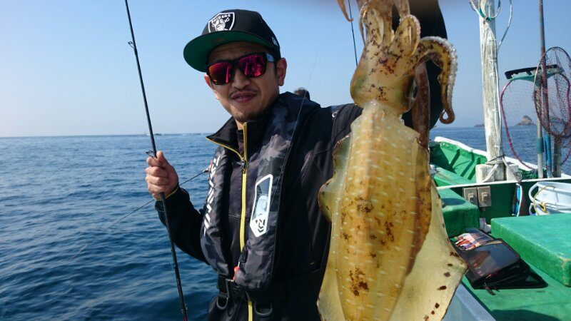 津市の真弓さんら三人でティップランで出船。風も流れもなく厳しい状態でしたがアオリイカ3杯釣り上げられました。最後まで頑張って釣り上げてくださいましてありがとうございました。 真弓さん厳しい状態の中頑張ってくださいました。 -