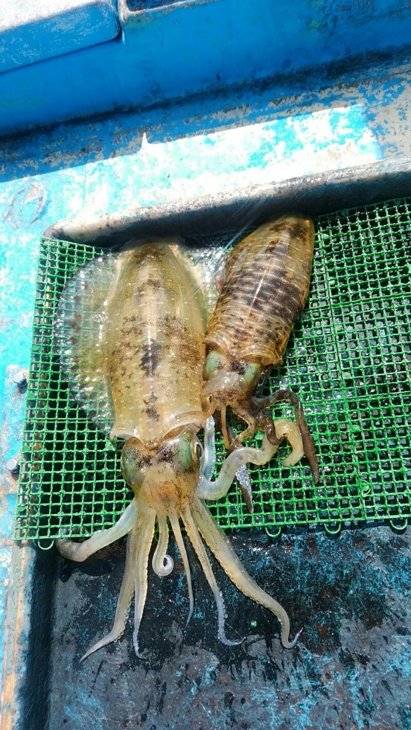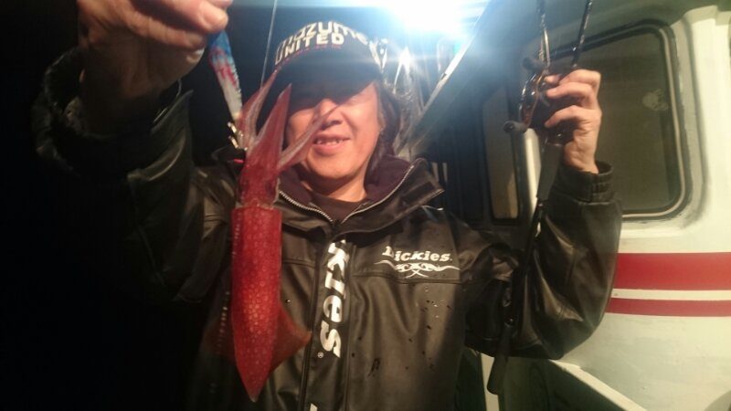 乗り合いのお客様で出船しましたが食いが渋く数杯に終わりました。お客様には最後まで頑張ってくださいましてありがとうございました。 仮谷さんアカイカゲットしました。 諏訪さんもいい型のアカイカを釣り上げられました。 -