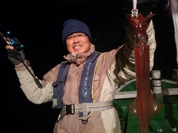 名古屋市深光さんらの仕立て船でティップラン出船。食いが渋い中アオリイカ1杯釣り上げられました。厳しい中最後まで頑張ってくださいましてありがとうございました。 しんじ君頑張ってくれました。 -