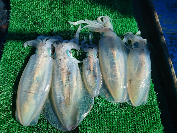 松阪市の池田さんが一人で出船。アオリイカ5は釣り上げられました。1杯を除けばキロアップ1杯、900グラムアップ3杯で良かったです。今日のように流れがあれば今後も期待できそうです。 池田さんの今日の釣果です。 -