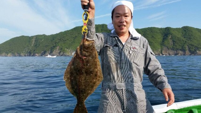 米原市の廣田さんらの仕立て船でテンヤ、タイラバで出船。平目60cm1尾、他カサゴ等釣り上げられました。うねりが高い中最後まで頑張ってくださいましたありがとうございました。 廣田さん60cm平目ゲットしました。 -