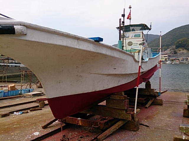 今日は小さい方の船を上架してメンテナンスにあてました。天候に恵まれて船底もすぐに塗れて良かったです。 -